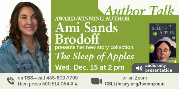 AMI TALKS ABOUT THE SLEEP OF APPLES, FAMILY SECRETS, AND SHARES TWO EXCERPTS FROM HER NOVEL-IN-STORES FOR THE ELEANOR LONDON COTE SAINT-LUC LIBRARY. LISTEN HERE:
